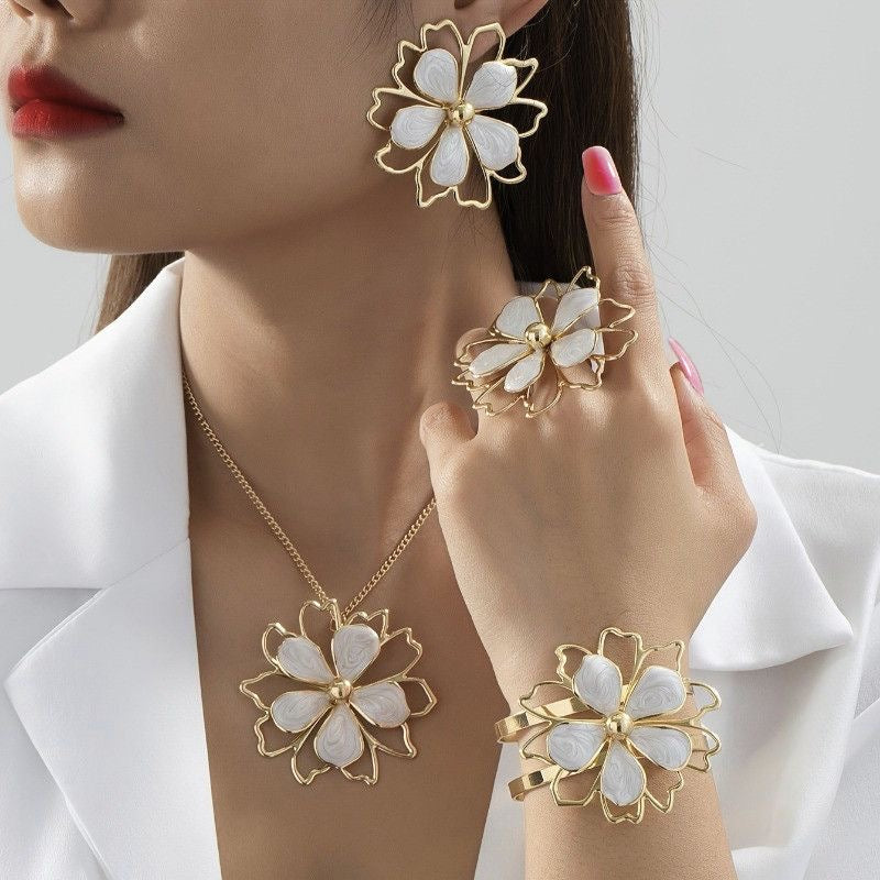 Ensemble bijoux fleuri blanc plaqué